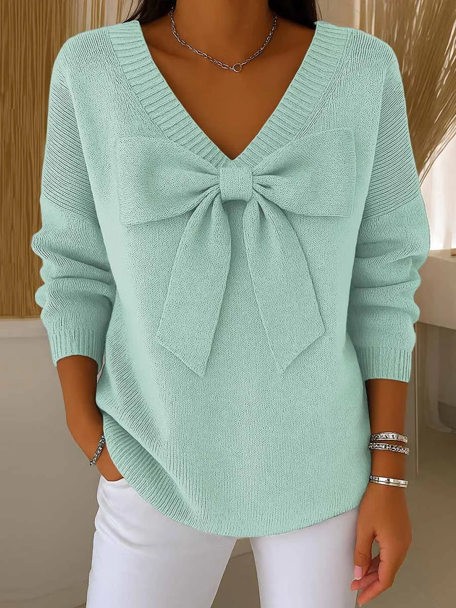 Barbora – ženski pulover z mašnico in V-izrezom – Luna Boutique