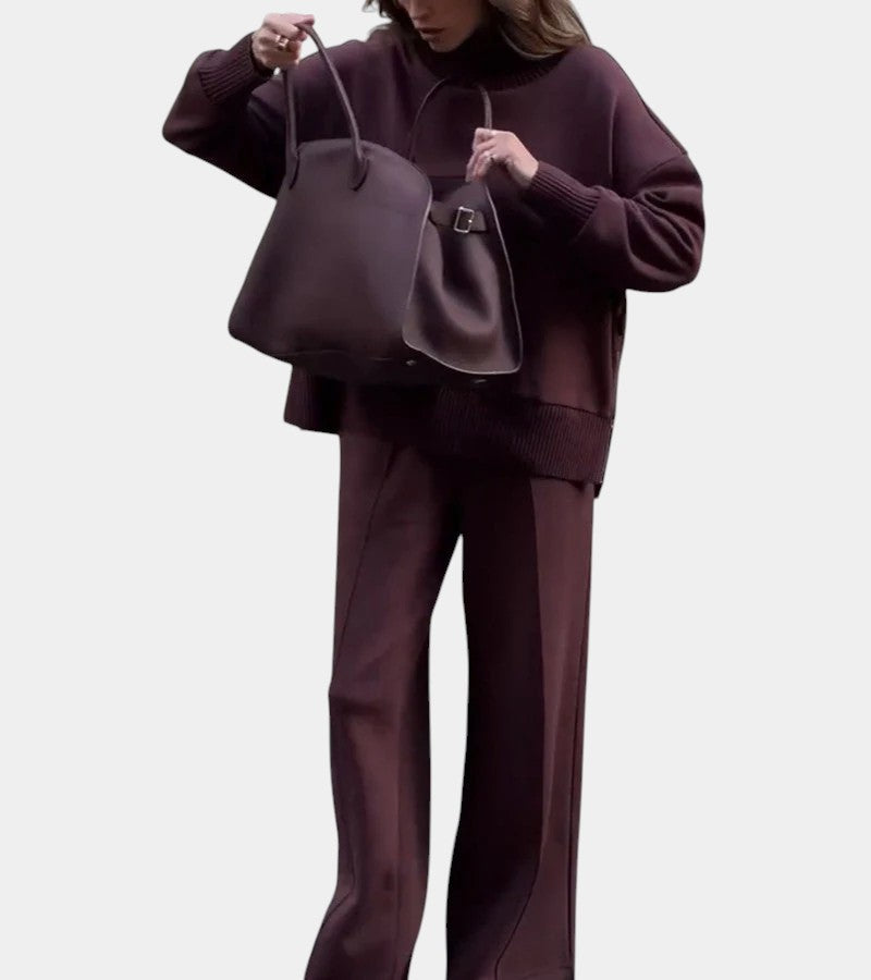 Mavella – Dámská teplá souprava s vysokým límcem a širokými kalhotami – Luna Boutique